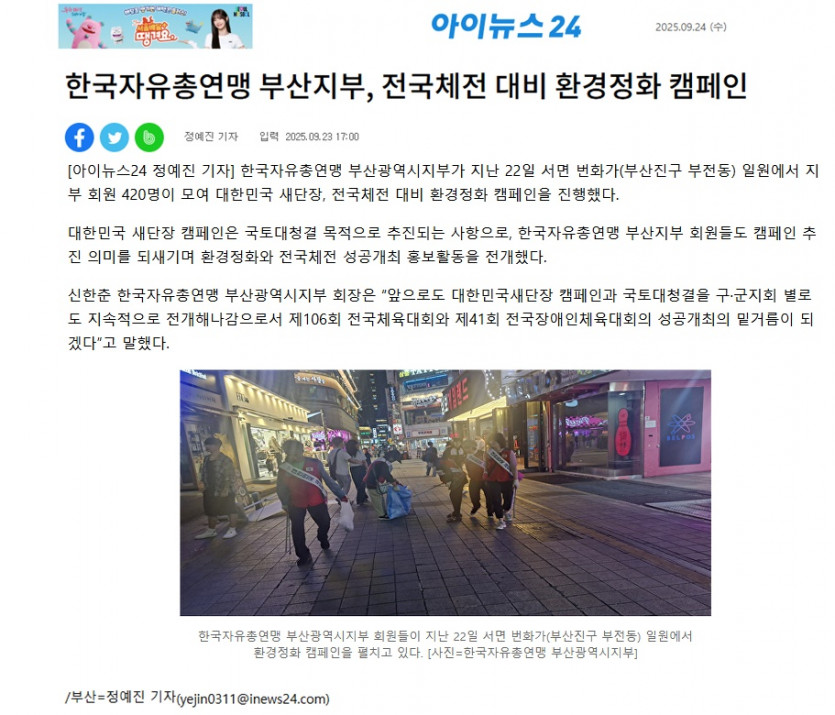 ▶[언론보도]9.22 대한민국새단장 환경정화캠페인 실시