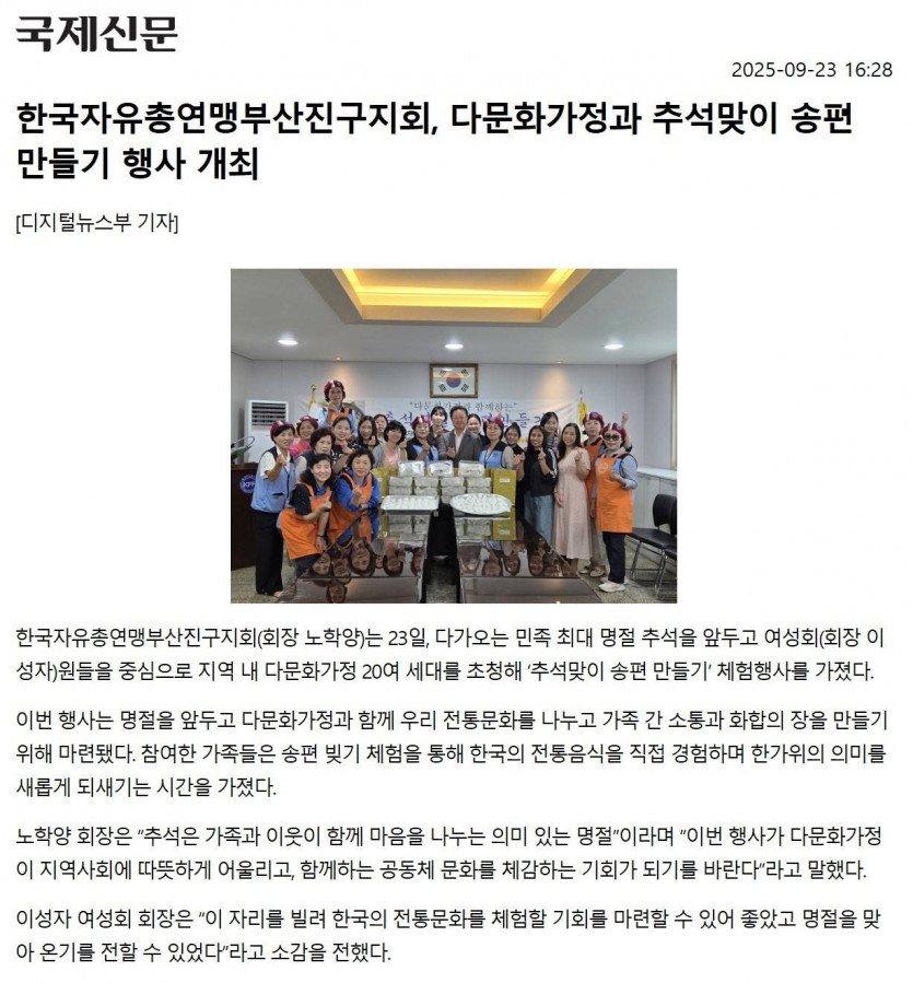 다문화 가정과 함께 추석명절 송편만들기 언론보도