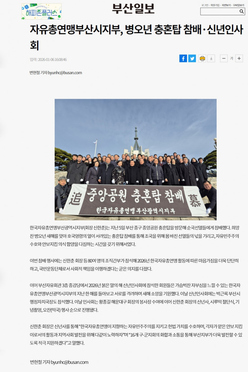 [언론보도] 충혼탑 참배 및 신년인사회 / 부산일보