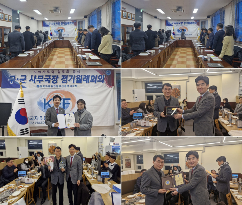 ○ 내용: 1월 신년인사 및 신규 영도구 사무국장 임명장 수여식과 임기가 만료된 사상구 사무국장에 대한 전별식을 진행하였다.