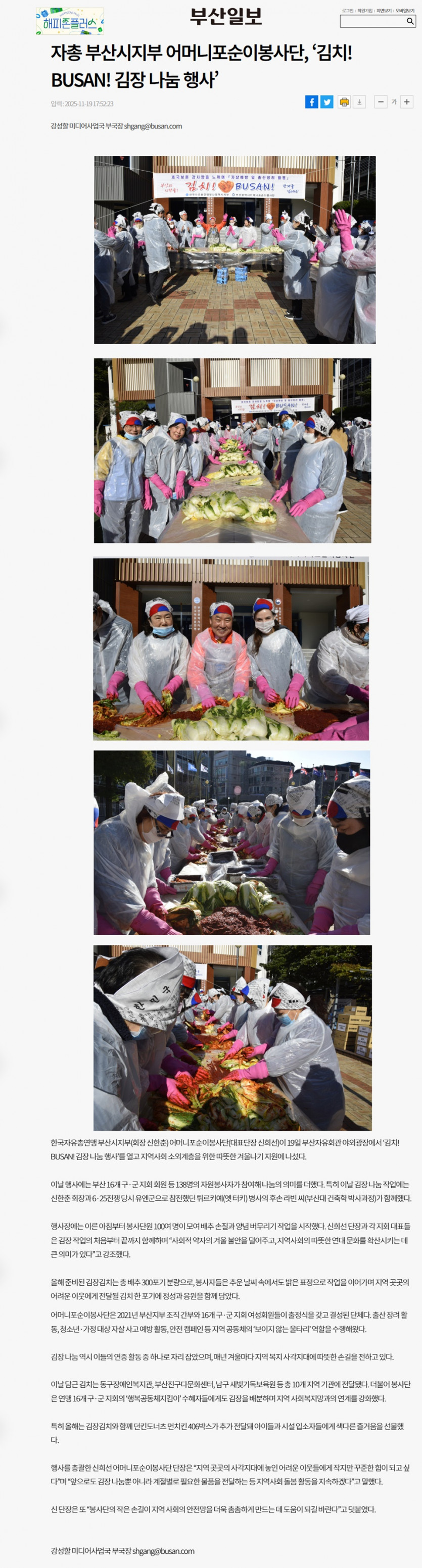어머니포순이봉사단 김치!BUSAN! 김장나눔활동