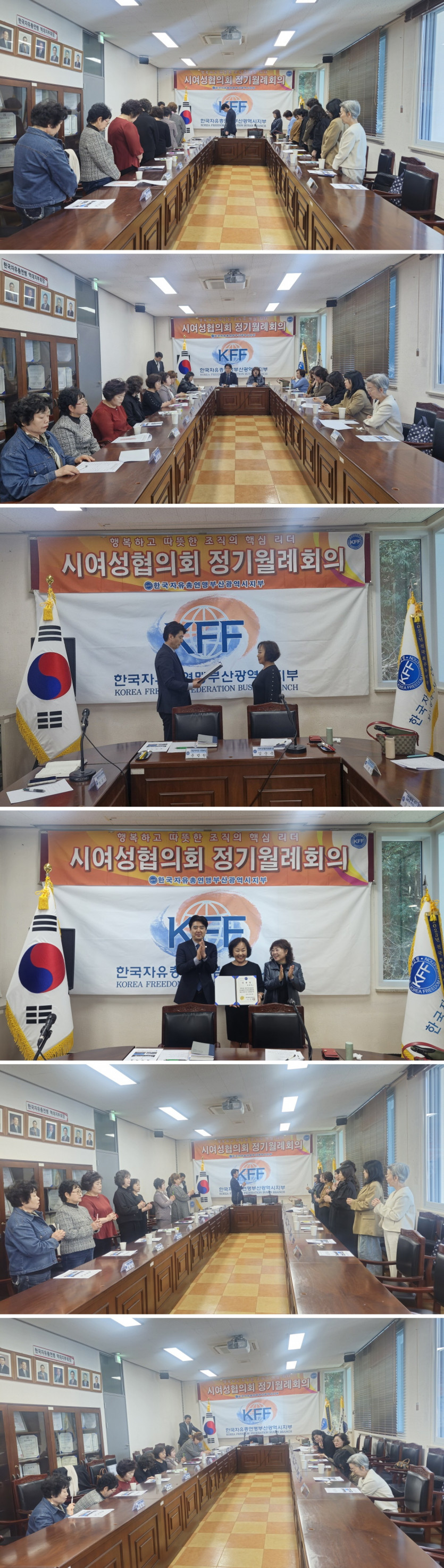 ○ 내용 : 4월 부산시지부 활동 공유, 박혜련 해운대구 여성회장 - 시여성협의회 홍보부장 임명장