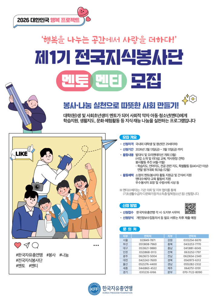 2026 제1기 전국지식봉사단 멘토,멘티 모집